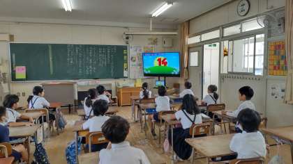 火曜日と金曜日の朝の時間英語の学習をしています。この日は20までの数について学習しました。