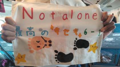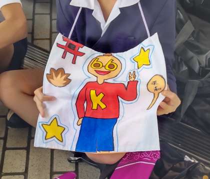 学級の旗です。1組が「キセキ」で2組が「K太郎」とマスコットが描かれてます。