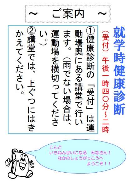 来年度、中野小学校に入学するみなさん! みなさんの入学を教職員、在校生一同、心待ちにしています!!