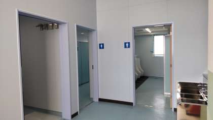 7月から始まった西館トイレの改修ですが、7日にはできる予定です。ブルーを基調にした落ち着いた感じです。楽しみにしていてください。