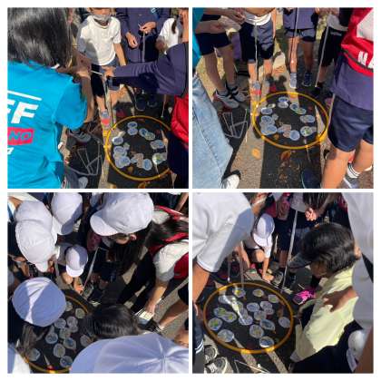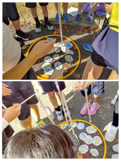 川崎橋のたもとでは、魚つりです。ニモのキャラクターたちを何匹釣れたかな?