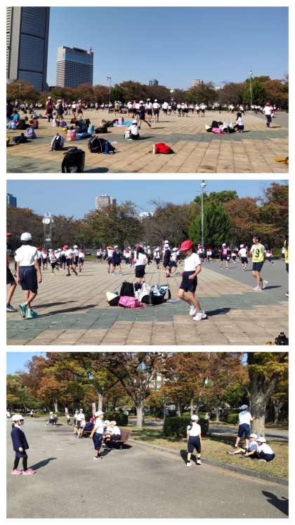 お弁当が終わって、今度は班で遊びました。鬼ごっこや「だるまさんの1日」などを楽しみました。