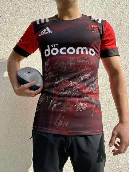 11月1日に出前授業で来てくださった「レッドハリケーンズ大阪」さんよりサインいりユニフォームが届きました。玄関に飾っていますので、ぜひごらんください。