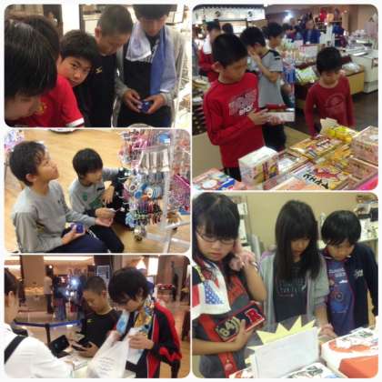 お風呂上がりはお土産タイムです。あっ、その前に、お風呂のことを書きますね。とても大きなお風呂で、男子が全員入っても大丈夫そうな露天風呂もありました。脱衣所も清潔で、お風呂上がりのお水がおいしかったようです。