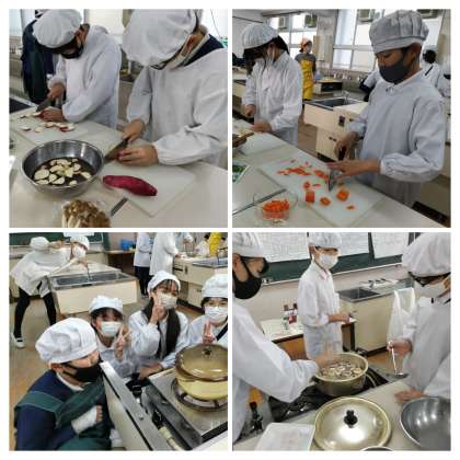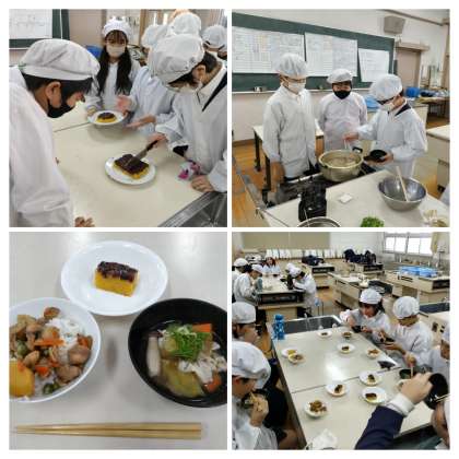 今年度は、賞がもらえませんでしたが、献立コンクールに応募した給食をみんなで調理しました。みそ汁とまぜご飯と小豆とカボチャのういろうを試食しました。美味しくできてよかったです。来年は、賞が取れるようまた、挑戦してくださいね。