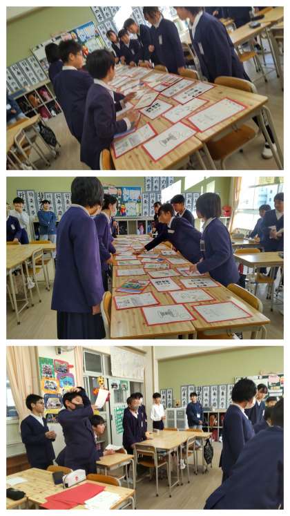 学級会で話し合って作った思い出かるた大会をしました。どの子も自分の思い出を絵と文にして、友だちもみんなの作ったかるたを知っていて、それぞれの思い出を共有して和やかな雰囲気で行われました。