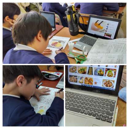 それぞれの土地の美味しいものをタブレットで調べてリーフレットをつくっています。