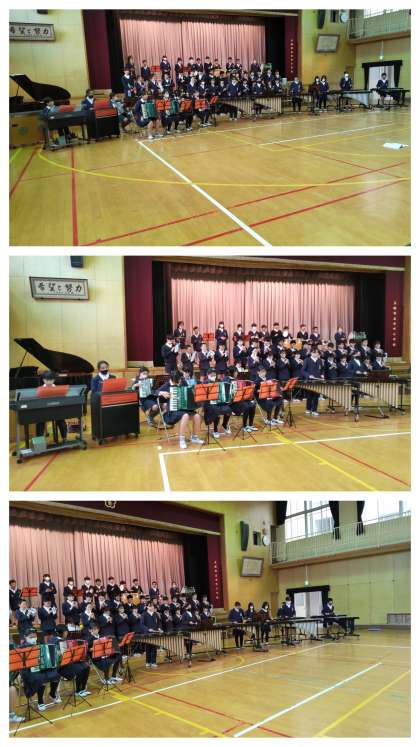 来週の学校公開で披露する合奏を講堂で学年で初めて演奏しました。後1週間みんなの心を一つにして演奏を仕上げていきます。楽しみにしていてください。