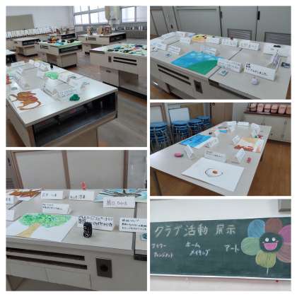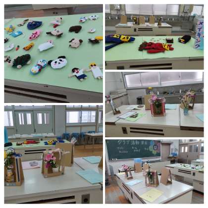 ホームメイキングクラブ、アートクラブ、フラワーアレンジメントクラブの展示です。16日の学校公開の日まで展示しています。ぜひ、お寄りください。