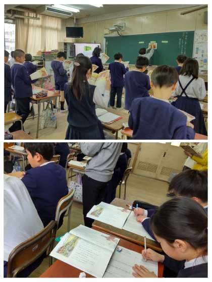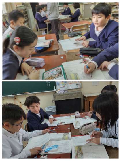 「世界一美しいぼくの村」を学習しています。昨日は、「ふるさとを思う気持ちを読み取ろう」をめあてにして学習しました。しっかり読んで気持ちの分かるところに線を引きました。その後、班で意見を交流して全員で交流しました。パグマンの村が大好きな気持ちがわかるところをしっかり捉えていました。