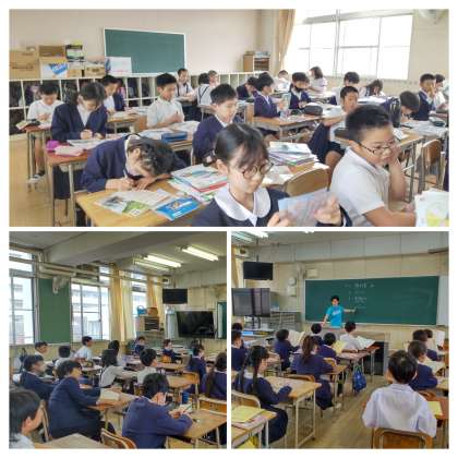 新しいクラスで新しい先生から教科書をもらったり、お話を聞いたりしています。みんな進級して希望に満ちた笑顔でいっぱいです。5・6年生は、講堂で今年の高学年の目標を聞きました。「Impact」「影響を与える」「衝撃を与える」自ら動いて発信していくことで学校のリーダーとして下学年の人たちを引っ張っていってくれると期待しています。