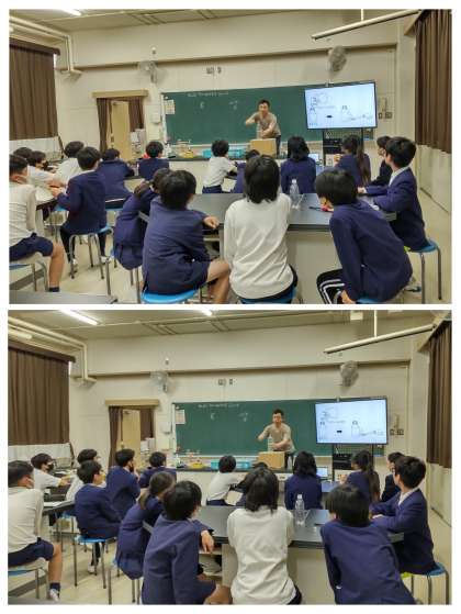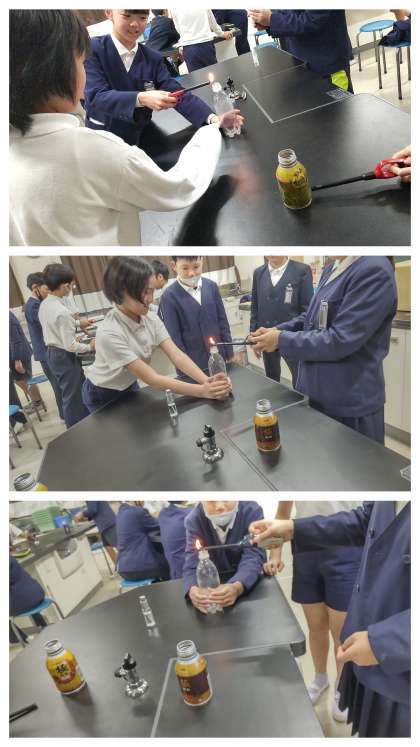 ものの燃え方の導入でアルコールを燃やしてみました。銅やリチウム入のアルコールは、緑色や赤色になって子どもたちはびっくりしていました。
