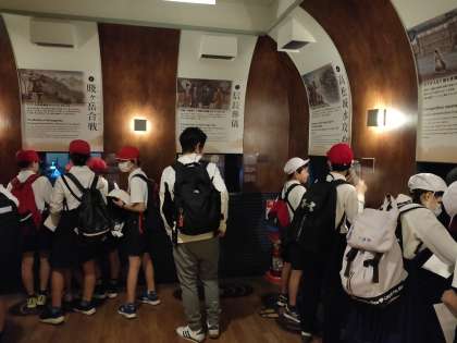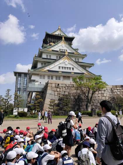 最高学年になって一週間が経ち、これからの学年のつながりを深めるため、最初の校外学習として大阪城公園へピクニックに行きました。今年は社会科で歴史を学ぶということもあり、興味深く史料を見たり、メモを取ったりしていました。お弁当の後はみんなで「三択クイズ」や「人間知恵の輪」など、学年集会をして盛り上がっていました。大変良いお天気でした。