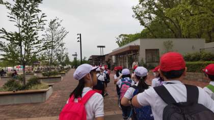 今日は長居公園に遠足に来ています。ルールやマナーを守って安全に行く約束を聞き出発しました。
