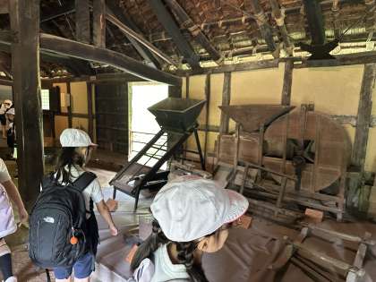 服部緑地公園に行ってきました。服部緑地公園では、古民家集落博物館の見学に行きました。日本各地の古民家の特徴を学習することができました。おうちに入って見学できるところもあり、間近で観察することができました。