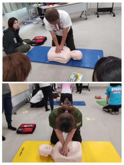 昨日、教職員がもしものときのためにきちんと動けるよう救命救急講習を受けました。胸骨圧迫が何よりも大切で呼吸停止や普段と呼吸が違うと思ったときは、迷わずにということを今年も確認しました。そして、AEDの使用の仕方も学びました。