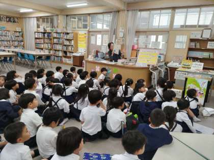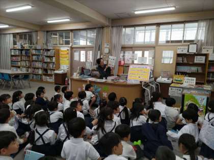 今日は、学校司書の川田さんに図書室で本を借りるときに知ってると本を探しやすくなる図書番号について教えていただきました。説明を聞いたあと、本を借りるときに違う場所にしまわれている本を正しい場所に戻したり、おめあての本をすぐに探すことができたりして喜ぶ子もいました。たくさん本に触れて図書館名人になってくれるといいですね。