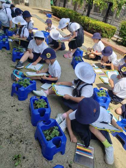 生活科の学習で朝顔の観察をしました。