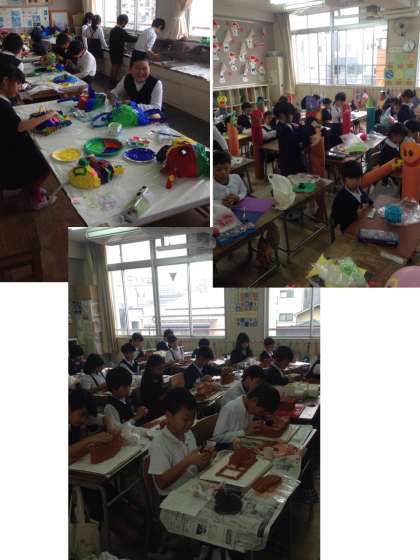 みんな作品づくり、がんばっていますよ。絵をがんばっているクラス、工作をがんばっているクラス・・・。 作品展、楽しみですね。