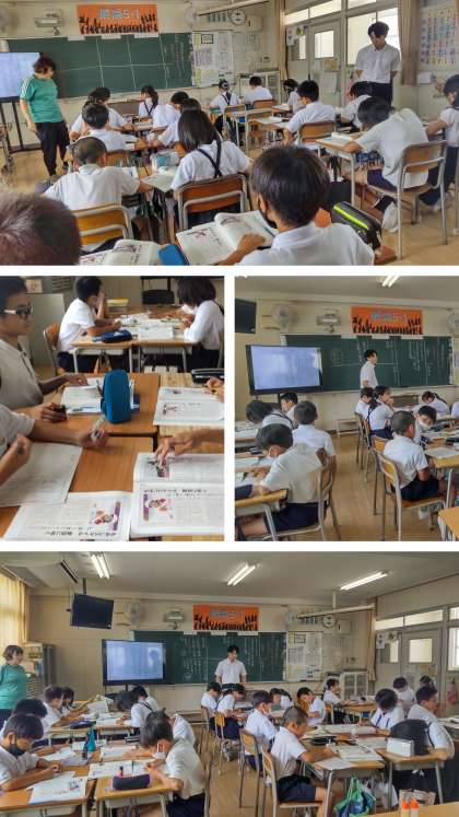 7月4日には、教育実習の先生が5年1組で研究授業をしました。国語で新聞2紙を読み比べて同じところ違うところを調べました。そこから筆者が一番伝えたいことは何かを読み取りました。班の人と交流し、みんなで話し合いました。同じことを伝える記事でも視点を変えるとこんなに違う文になるのかと学習することができました。