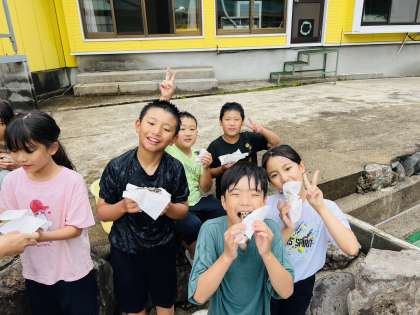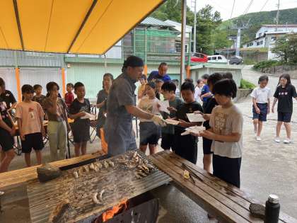 焼けた魚を順番にもらって食べました。背中のところが美味しいよと教えてもらいました。焼いてもらった魚はとても美味しかったです。