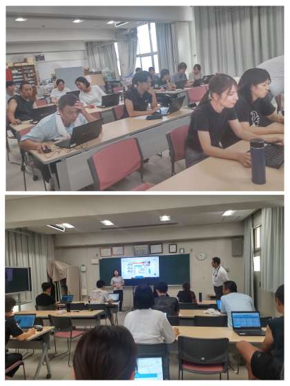 今日は、プログラミングのアルゴロジック、キーボード練習アプリらっこたんをやってみました。その後、スカイメニューの発表ボードを使って夏の思いでを作成したり、ティーチャーズコミュニティサイトを見てみたりしました。2学期からの子どもたちの学習に生かしていきます。