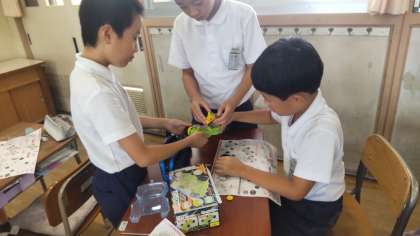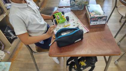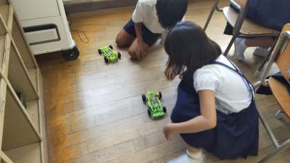 一学期に学習していたモーターで走る車を走らせて見ました。直列に繋ぐとモーターが回りすぎてオーバーヒートしやすいことも分かりました。