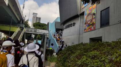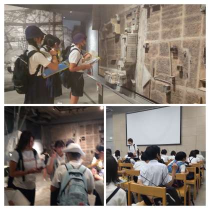 今日はピースおおさかと大阪城の戦跡めぐりをしました。ピースおおさかでは、戦時下の大阪のことを展示や映像で学びました。「火の海 大阪」というアニメ映画を見て大阪大空襲の時の様子がよくわかりました。わかったことをしっかりメモをとって帰ってきました。