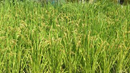 稲が実ってきて、穂が垂れています。稲刈りは10月初旬の予定です。