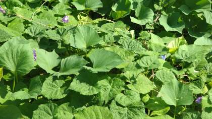 さつまいもの花がたくさん咲いています。あれあれ何かに似ていますね。そうです、アサガオやユウガオの仲間なんです。花が咲くのは珍しいので学習園に行って見てみてくださいね。ぃもほりは、もう少し後の予定です。