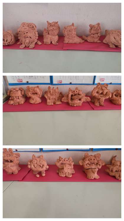 はにわ粘土で顔と胴体に分けて作りました。一人一人表情が違っていいですね。