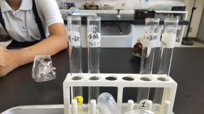 4本の試験管に入っているものを塩酸や水に溶かしてみました。