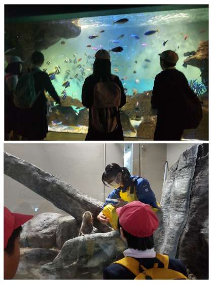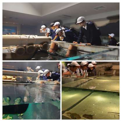 宮島水族館を30分早く開館していただいて、海の生き物たちを見学しました。触れる生き物もあって楽しめました。
