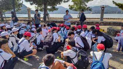 平清盛像のところで暮らす写真を撮りました。宮島ともお別れです。