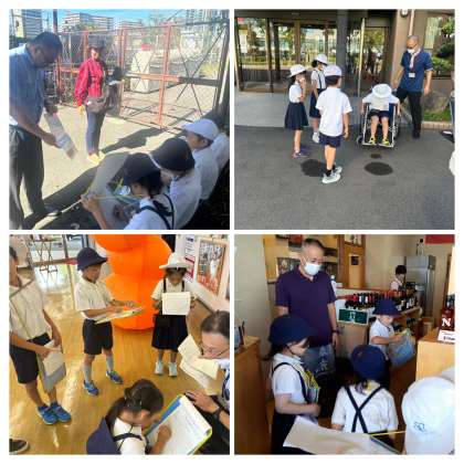 今日は、中野の町にあるお店や施設などを班に分かれて回りました。しっかりお話を聞いてメモをして帰ってきましたそれぞれの班に付いていただいた保護者の皆様、ありがとうございました。おかげさまで安全に学習することができました。学習したことは、まとめてみんなで発表し合います。とても楽しみです。