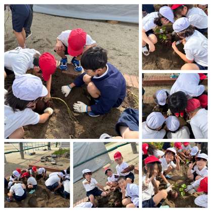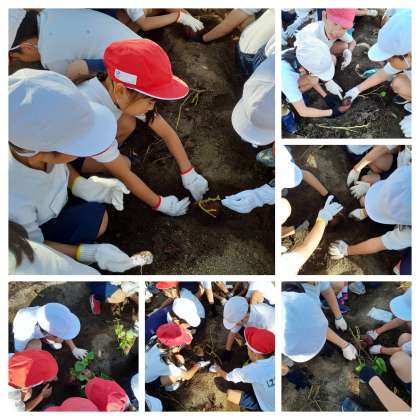 昨日、いもほりをしました。掘ってみると大きなおいもがたくさんとれて大喜びでした。取れたおいもをお日様に当てて甘くなったらみんなで食べます。