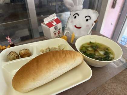 今日の給食は、焼きシューマイ、中華みそスープ、ツナと野菜のオイスターソースいためです。