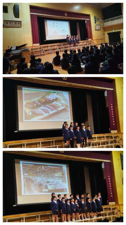 3年生は、食品ロスについて調べ考えたことを発表しました。リコーダーでにわとりポルカとエーデルワイスを演奏しました。3年生出始めたリコーダーこんなに上手に吹けるようになりました。
