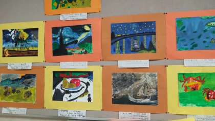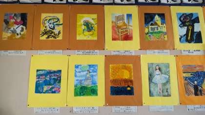名画の模写をして色刷り版画にしました。その中に自分が隠れています。