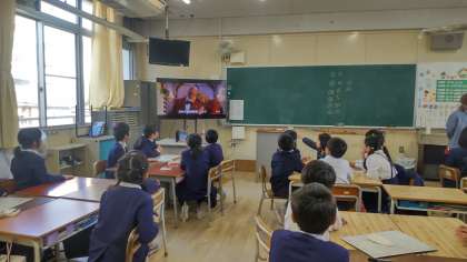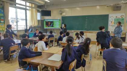 動画を観てその中からクイズをキャスリーン先生が出してくださいました。班ごとにホワイトボードに答えを書いて選んだ番号に隠れている点数をもらって競いました。とても楽しく学習できました。