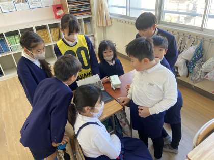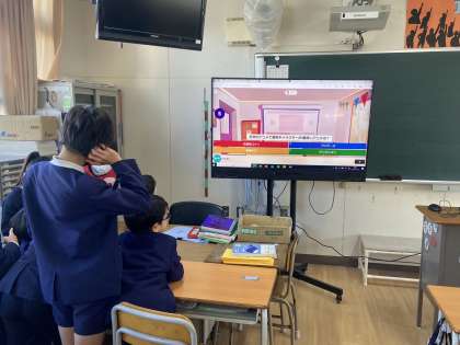 昨日のクイズの画像や放送室からの順位発表、教室での様子です。