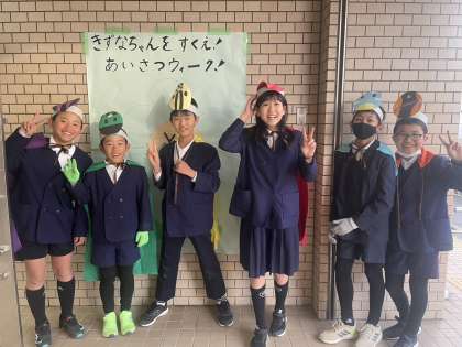 20日からあいさつ週間であいさつレンジャーが登校時にあいさつをしています。あいさつレンジャーと大きな声で挨拶する人もたくさん増えてきました。あいさつで泣いているきずなちゃんを笑顔にしましょう!