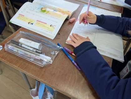 23日、「つくればいいでしょ」という題材で長所について学習しました。自分の長所を見つけられない主人公にお母さんが言った言葉が「つくればいいでしょ」でした。いろいろな成功体験を通して、今まで気づかなかった自分のよさに気づきました。その後、自分の長所を見つけました。友だちと話して教えてもらった長所もありますが、自分でたくさん見つけることができました。あきらめずに頑張って自分のよさに気づいた主人公のように今日見つけた長所をどんどん伸ばしてほしいです。