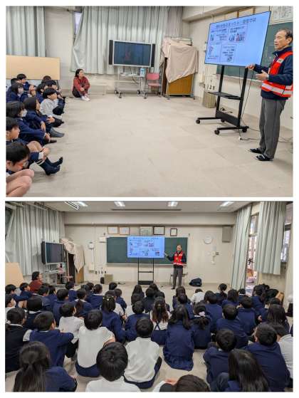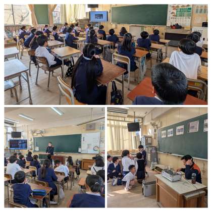 3年生は、火事や事故、病気など119に電話をかけて消防車や救急車の呼び方を消防署の方から学びました。災害時の行動について動画で学びました。