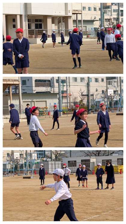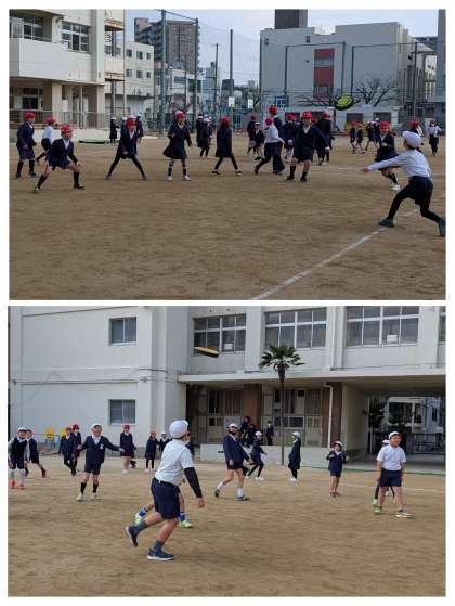 昨日からBBフェスティバルが始まりました。ドッチビーを使って1・6年、2・4年、3・5年のペア学年の赤白で対決しました。昨日は3・5年でした。左で5年生は投げたのですが難しかったです。楽しめたかな?