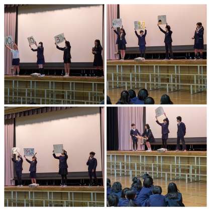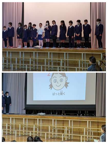 学校保健委員会を行いました。保護者、学校薬剤師の先生にも参加いただきました。健康委員会が「目の健康」について発表しました。自分たちで調べたことをクイズにして全校のみんなに知らせることができました。目にいい食べ物、目を休めるにいいこと、ゲーム機などどれくらい目から離せばいいか、一度近眼になったら目は元のように見えるようになるかの4問でした。保護者の方にも「いい勉強になりました」と言っていただきました。本校も1日約2時間ゲーム機やスマートフォンを使用している人がいます。目を休めて使いましょう。