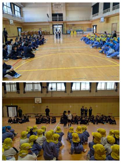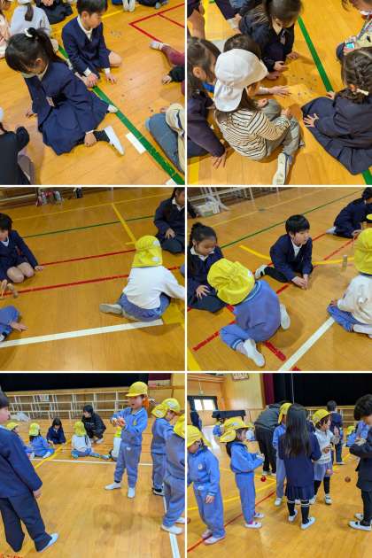 後から参加した幼稚園、保育園との交流の様子です。来年度の春には、学校たんけんを一緒にやります。