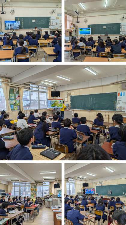今日は、地震・津波の避難訓練をしました。避難訓練の前に学校司書の川田さんが東北に行かれたときに見学された被災地の話や「つなみてんでんこ はしれ、上へ」の読み聞かせをしていただきました。釜石の奇跡の話でした。中学生と小学生が2km上へ上へと逃げた話を聞きました。津波の高さや川を津波が上ってきて避難所になっていた小学校でたくさんの人が命を落としたことなどを教えていただきました。