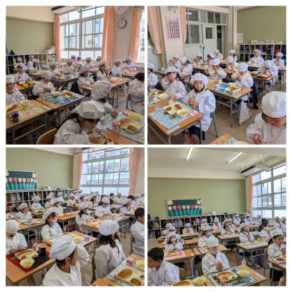 今日は初めての給食でした。ハンバーグにコーンスープ、昆布と豆でした。苦手なおかずがある子もいましたが、みんな一生懸命食べました。