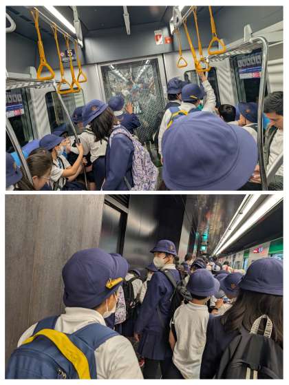 谷町四丁目で中央線に乗り換えて、夢洲駅に着きました。すごい人です。